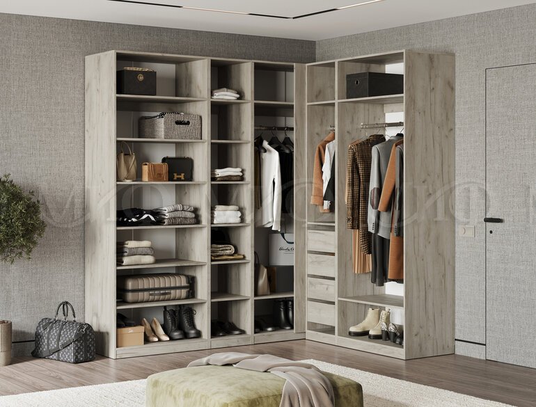 Гардеробная/шкаф 4000 мм Ларго №1 открытая дуб крафт серый (Миф)