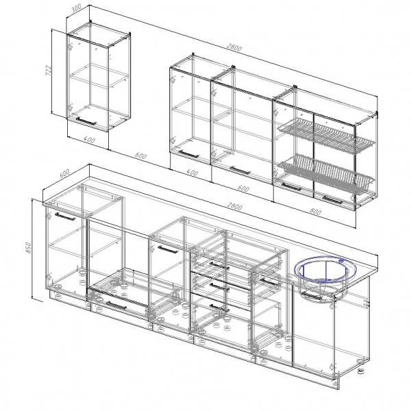 Артикул: A65008Кухонный гарнитур Фьюжн 3000 мм (Санвут)