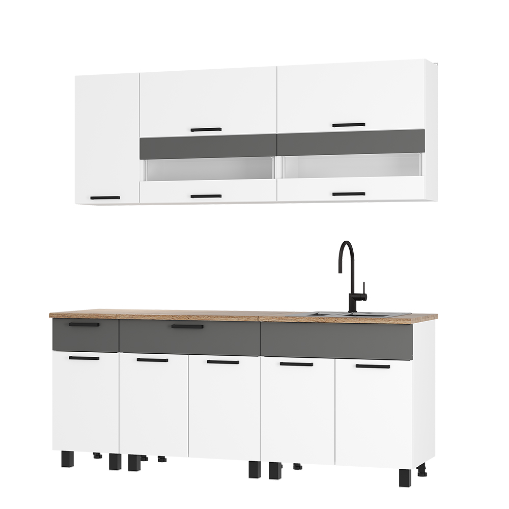 Кухонный гарнитур Монтана 2000 мм белый/графит (БТС) в Качканаре - kachkanar.mebel-e96.ru