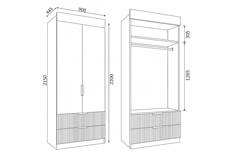 Размеры: ш900*г445*в2200мм